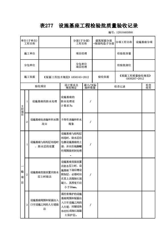 表格名称:120104050901 设施基座工程检验批质量验收记录