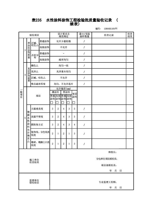 表格名称:130103110101 水性涂料涂饰工程检验批质量验收记录