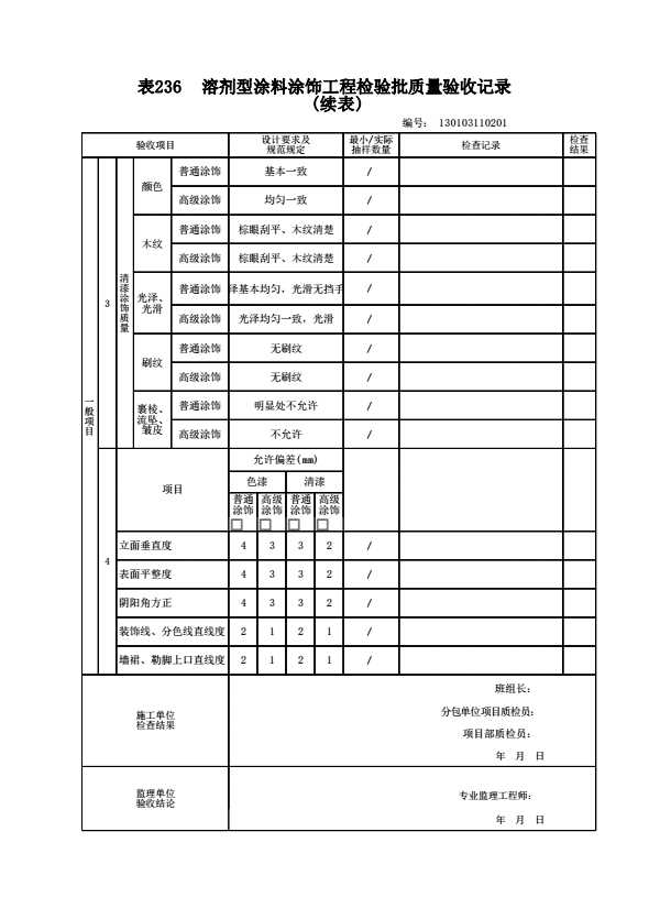表格名称:130103110201 溶剂型涂料涂饰工程检验批质量验收记录