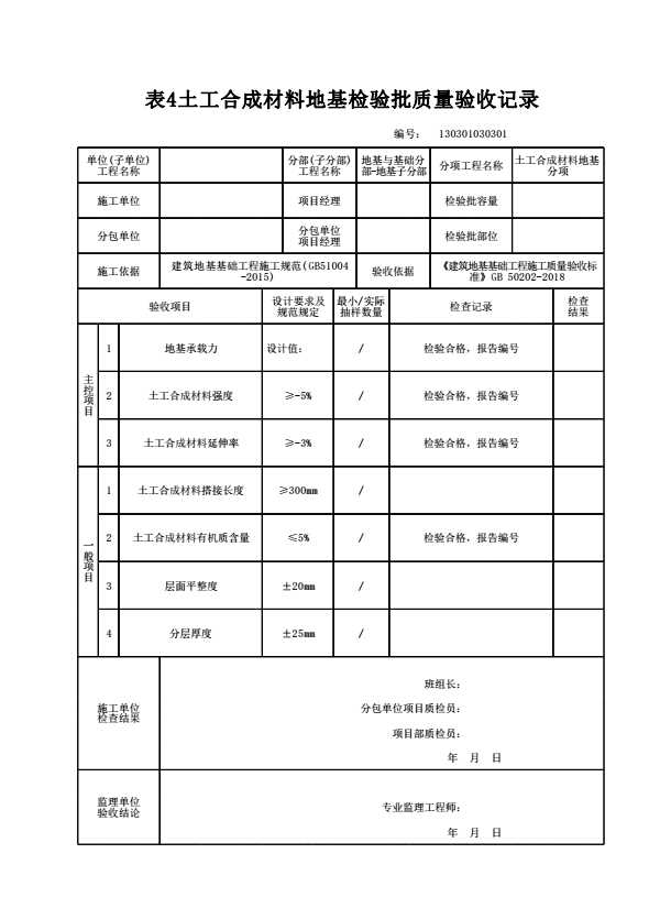 表格名称:130301030301 土工合成材料地基检验批质量验收记录