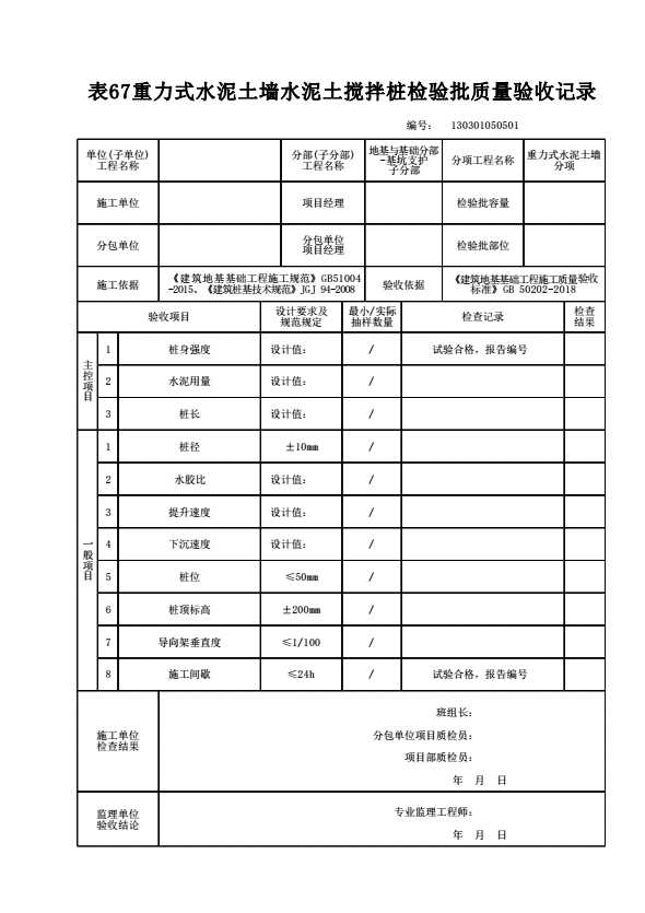 表格名称:130301050501 水泥土搅拌桩检验批质量验收记录