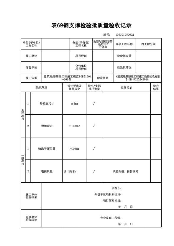 表格名称:130301050602 钢支撑检验批质量验收记录