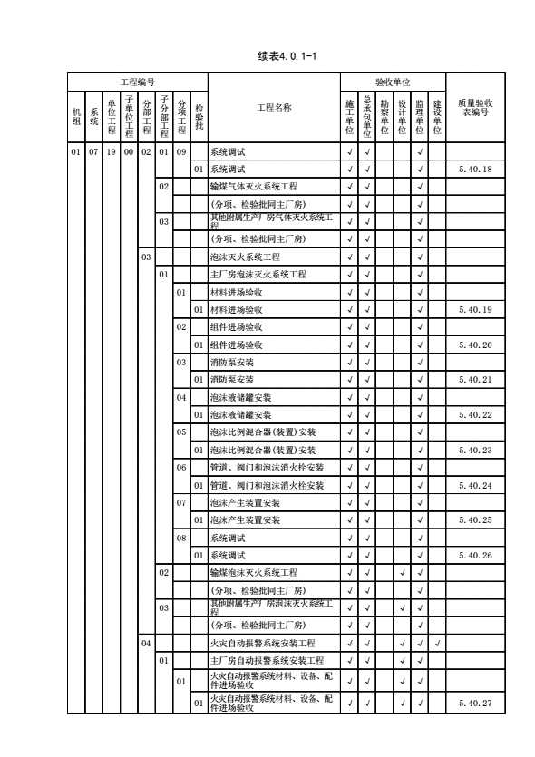 表格名称:表4.0.1-1 火电系统工程质量验收范围划分表