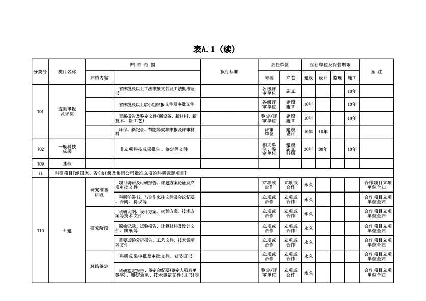 表格名称:续表A.1(701~710)