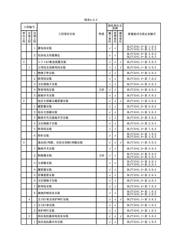 表格名称:表4.0.2 变电工程施工质量验收范围
