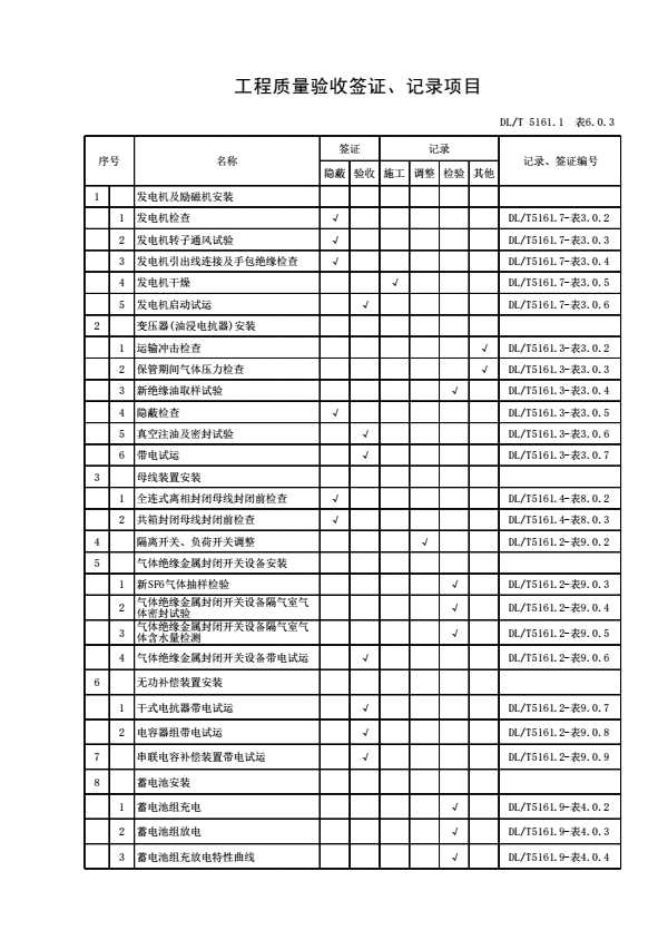 《电气装置安装工程质量检验及评定规程》DLT 5161.1~5161.17-2018