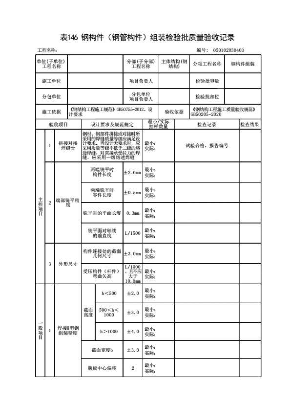 表格名称:050102030403 钢构件(钢管构件)组装检验批质量验收记录