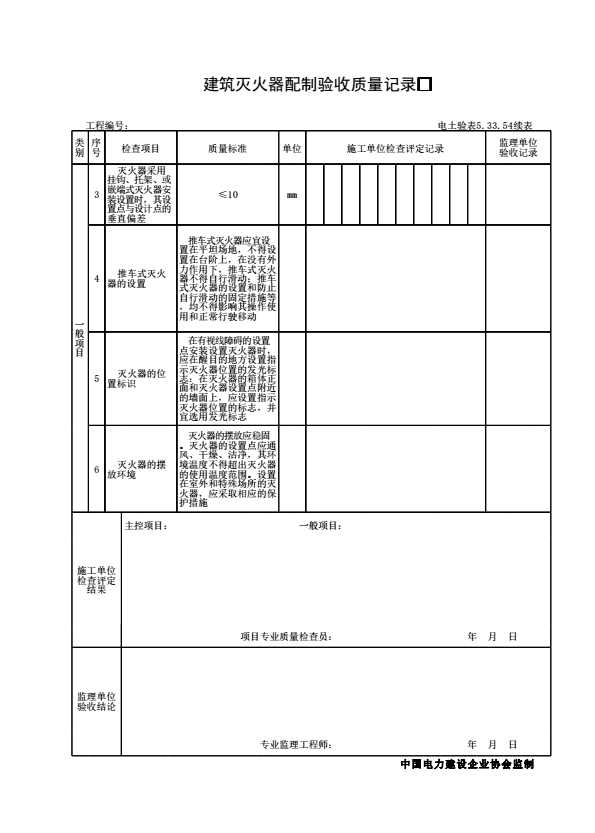 表格名称:电土验表5.33.54 建筑灭火器配制验收质量记录