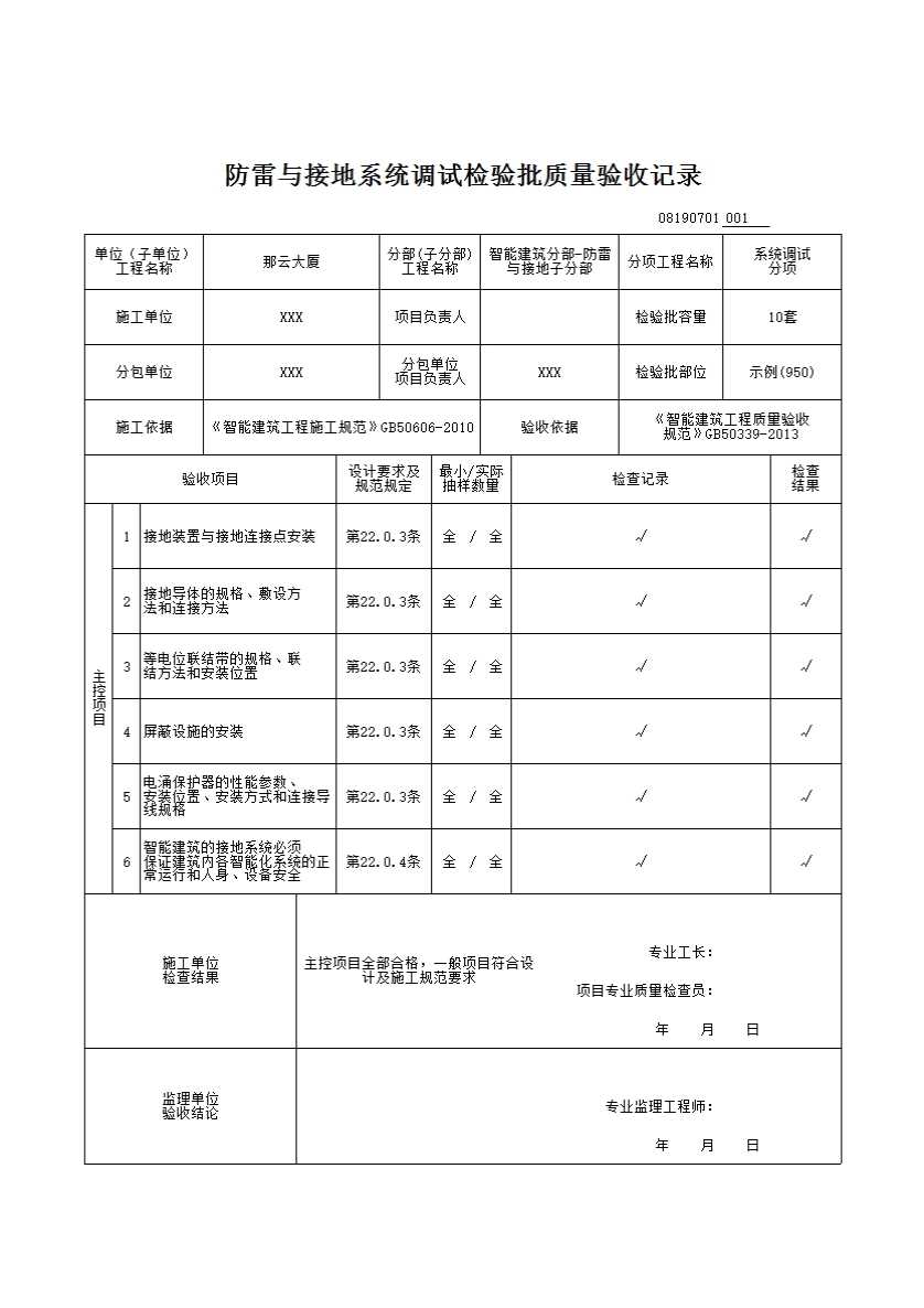 22.0.3 智能建筑的防雷与接地系统检测应检查下列内容,果符合设计要求的应判定为合格: