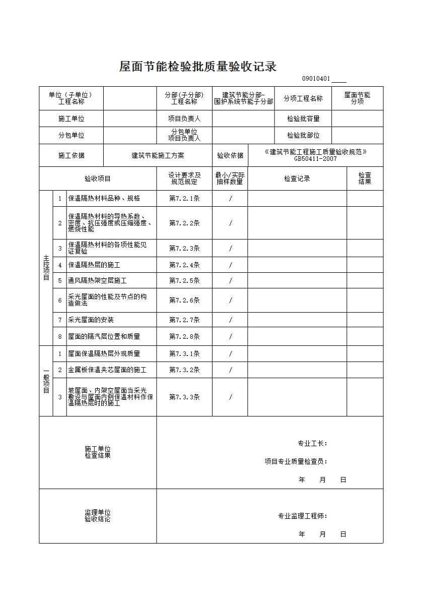09010401_屋面节能检验批质量验收记录