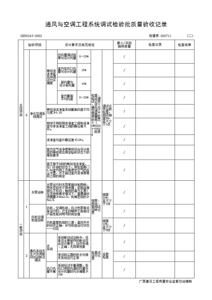 6.系统风量调试:系统总风量调试结果与设计风量的偏差不应大于10%