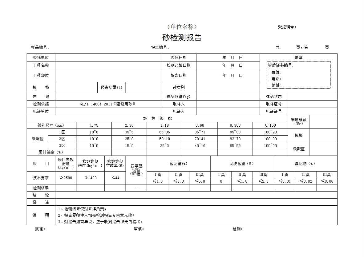 表格名称:砂检测报告