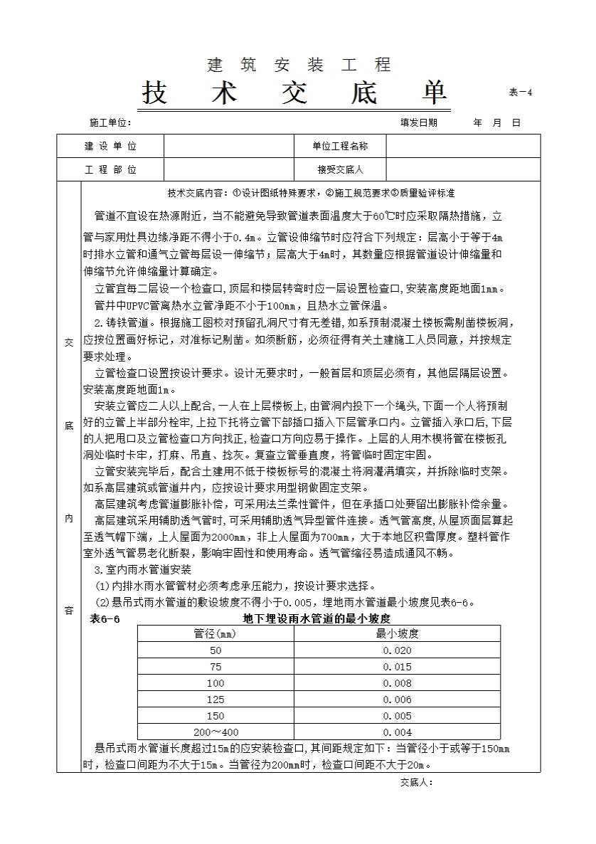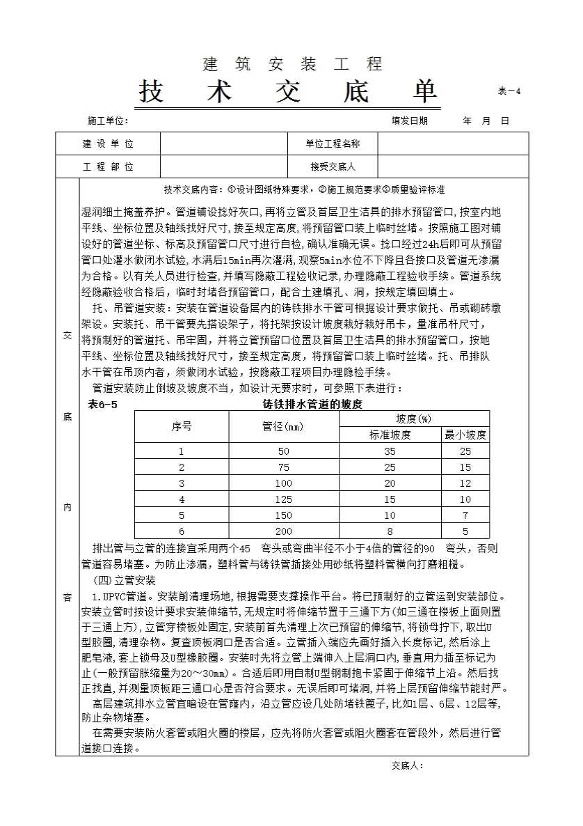 表格名称:室内排水管道安装工程