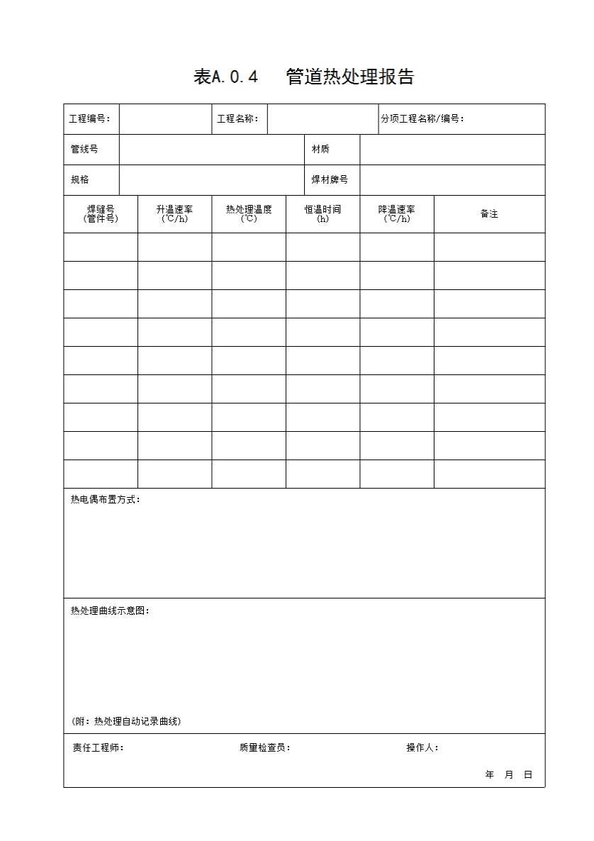 表格名称:表A.0.4 管道热处理报告