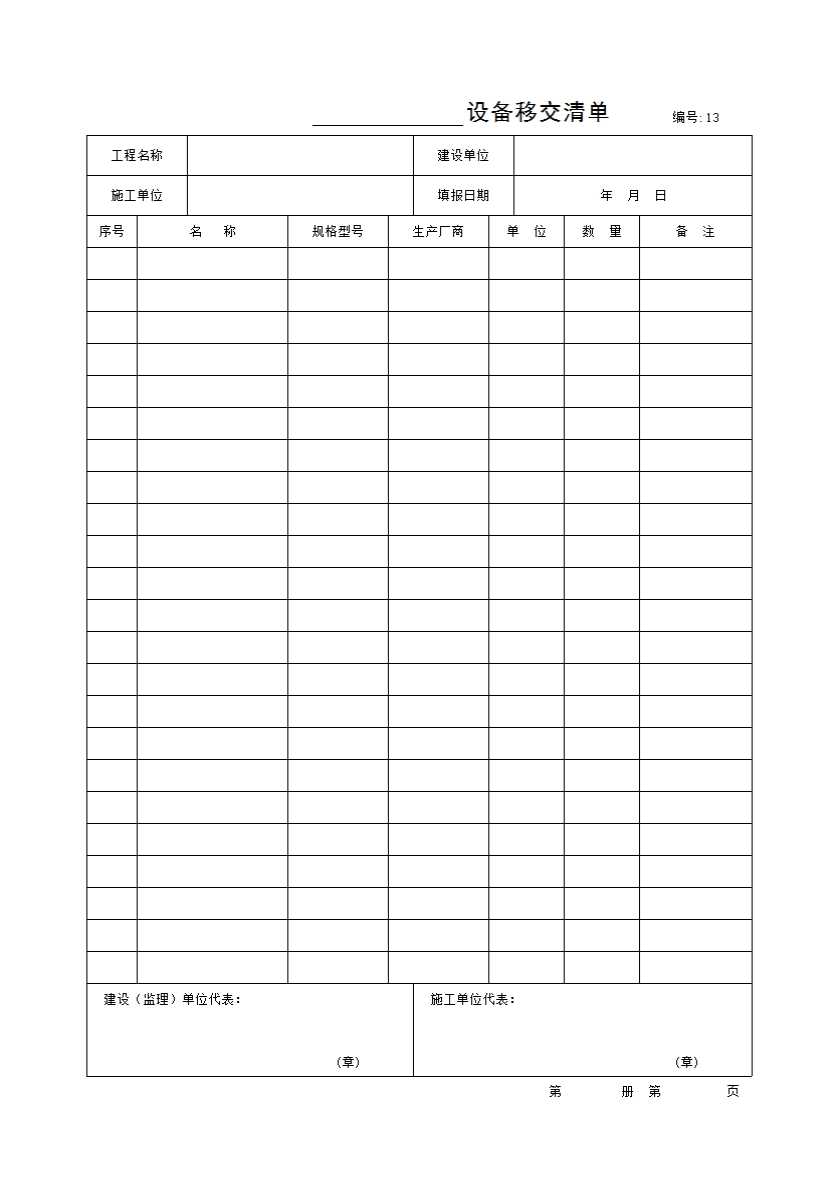 表格名称:______设备移交清单