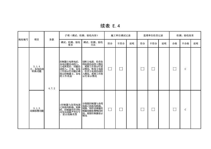 表格名称:表E.4 可燃气体探测报警系统调试、检测、验收记录(续表7)