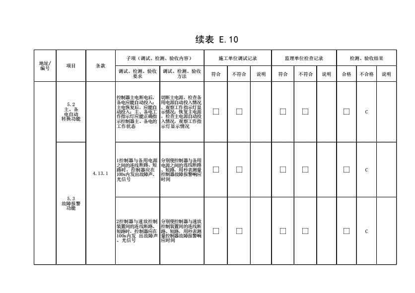 表格名称:表E.10 防火卷帘系统调试、检测、验收记录(续表5)