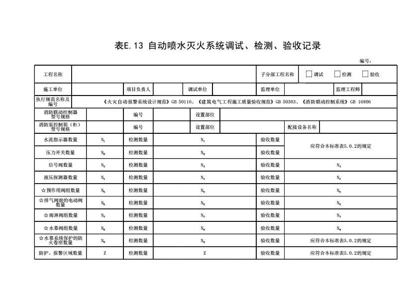 表格名称:表E.13 自动喷水灭火系统调试、检测、验收记录