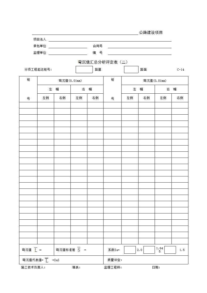 表格名称:C-14 弯沉值汇总分析评定表(二)