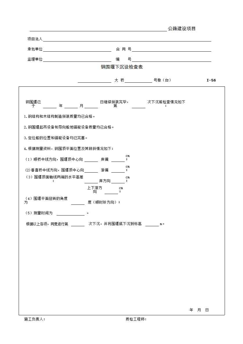 表格名称:I-56钢围堰下沉设检查表