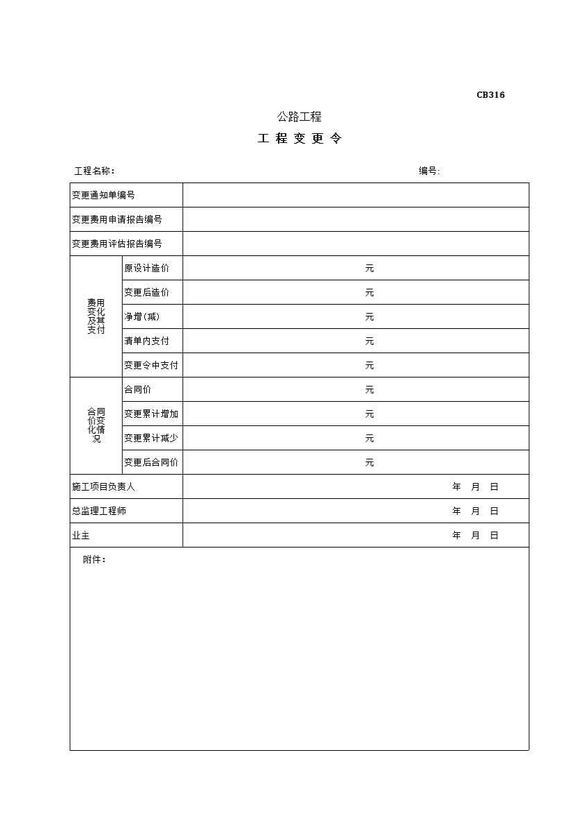 表格名称:CB316 工程变更令