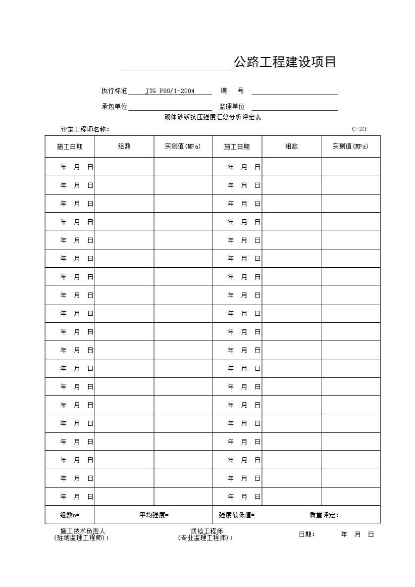 表格名称:C-23表 砌体砂浆抗压强度汇总分析评定表