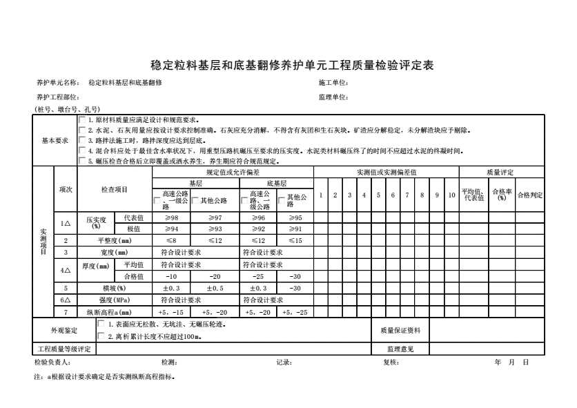 稳定粒料基层和底基翻修养护单元工程质量检验评定表