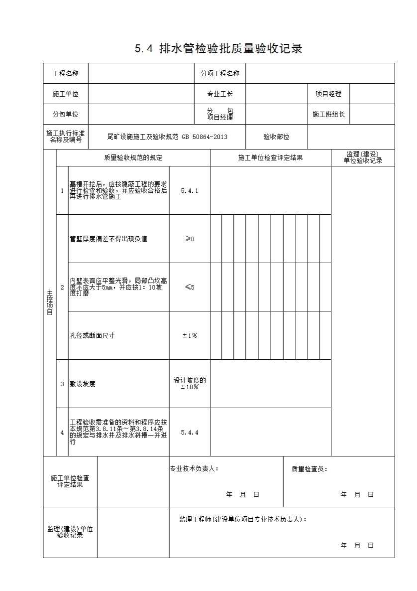 5.4.4工程验收需准备的资料和程序应按本规范第3.8.11条~第3.8.14条的规定与排水井及排水斜槽一并进行。