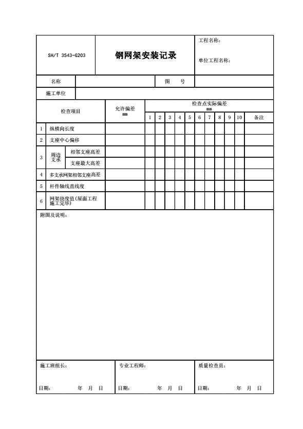 表格名称:SH/T 3543-G203 钢网架安装记录