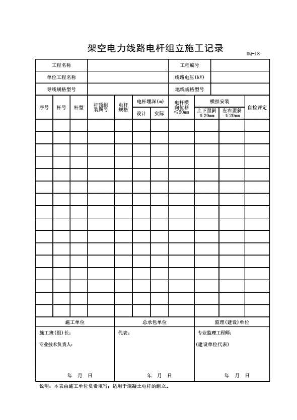 DQ-18 架空电力线路电杆组立施工记录