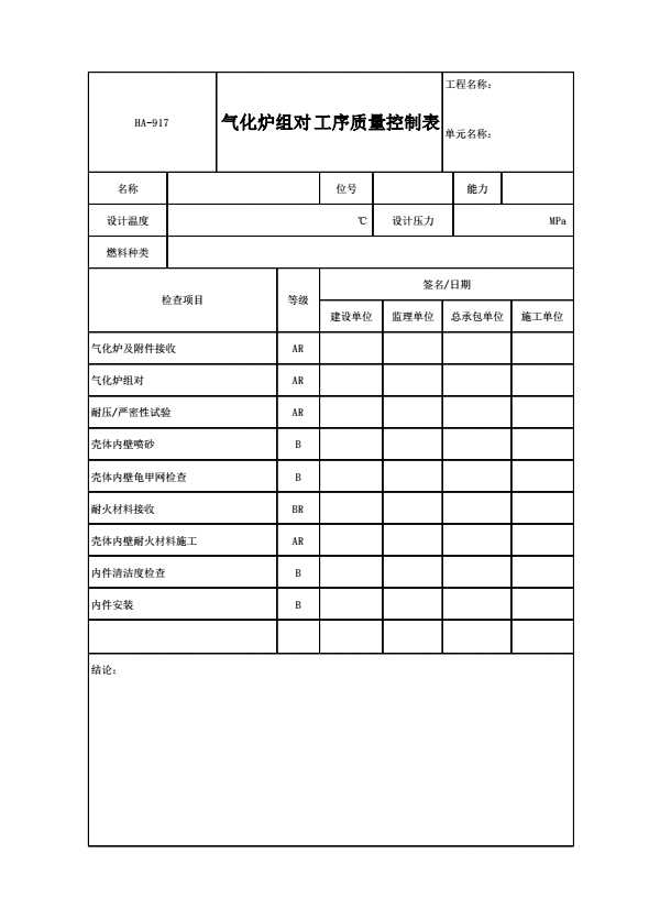 A.9 压力容器、球罐现场组焊类级交工技术文件表格