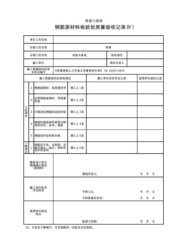 表格名称:【地基与基础】钢筋原材料检验批质量验收记录(Ⅳ)