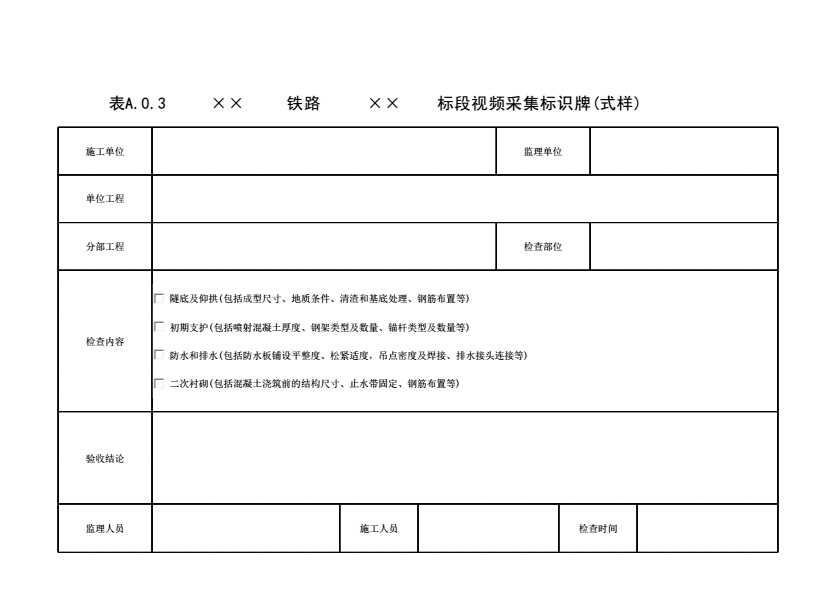 表格名称:表A.0.3 ××铁路××标段视频采集标识牌(式样)