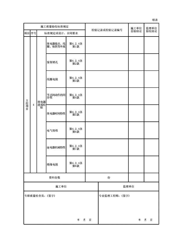 表格名称:08090101 设备及材料进场检验检验批质量验收记录表