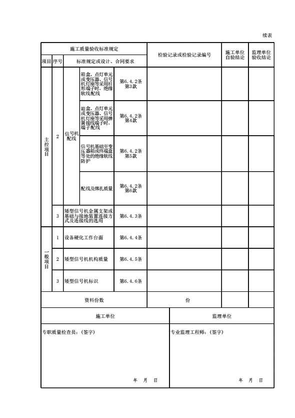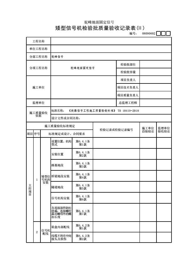 08090602 【驼峰地面固定信号】矮型信号机检验批质量验收记录表(Ⅱ)