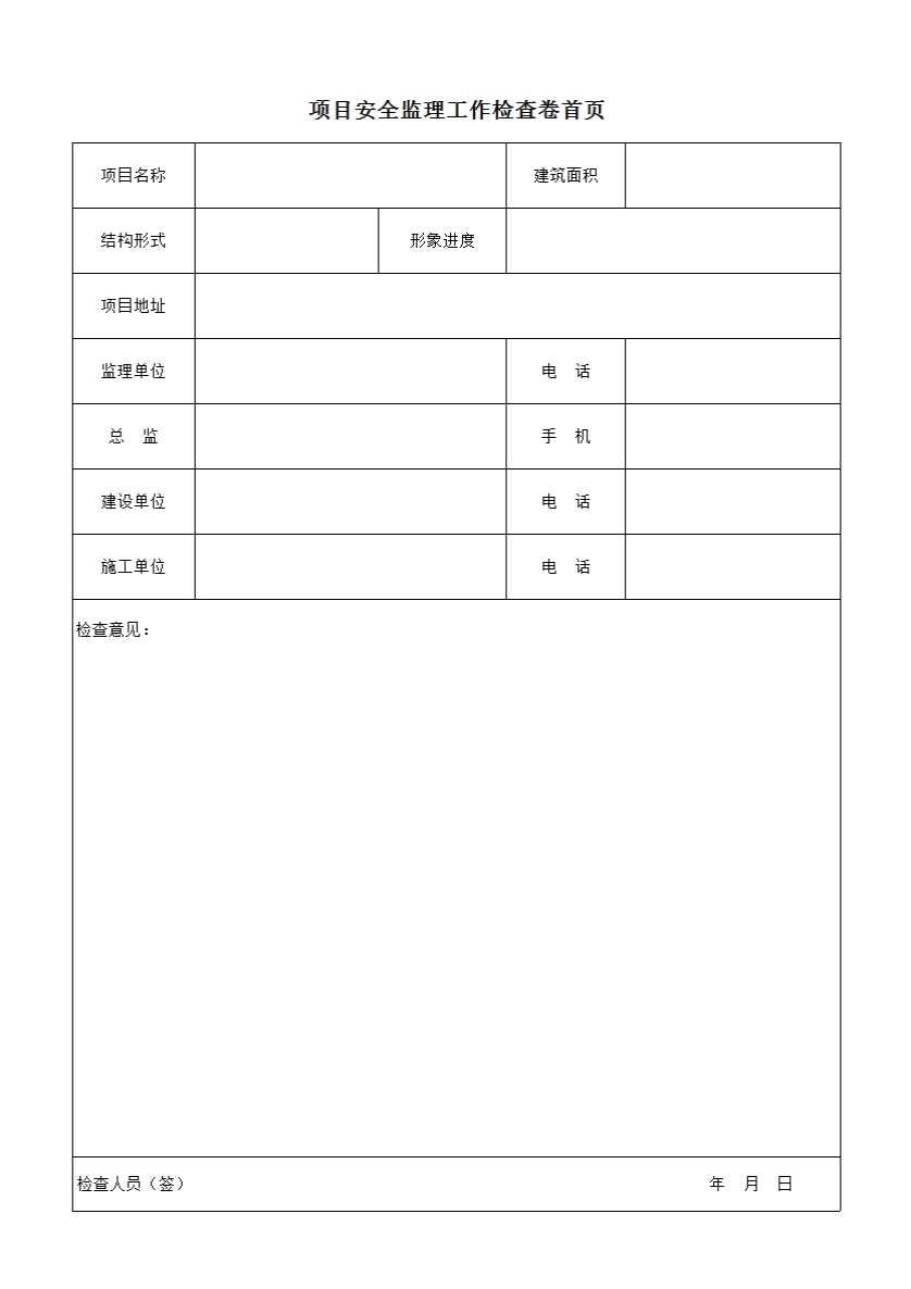 表2项目安全监理工作检查卷首页