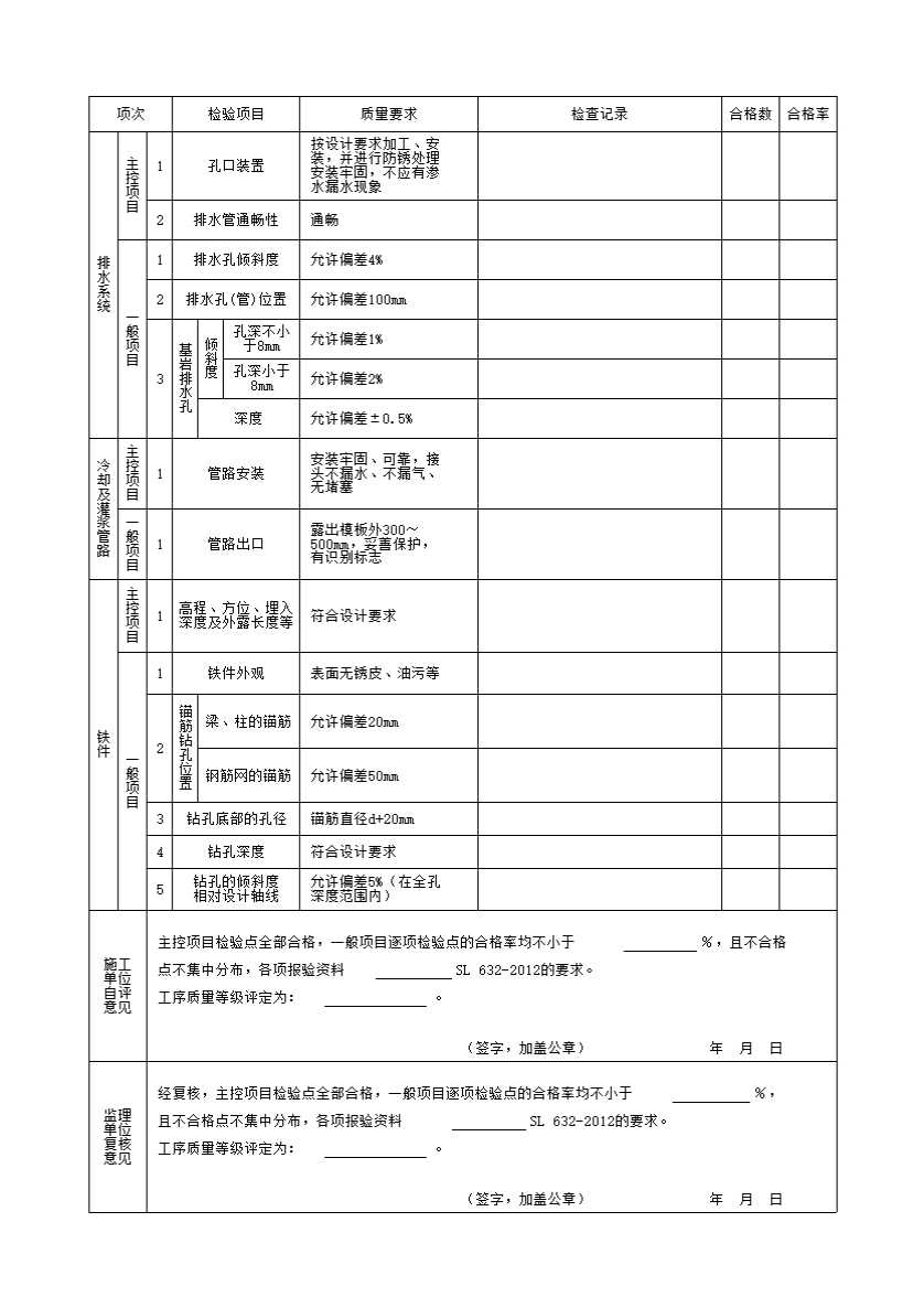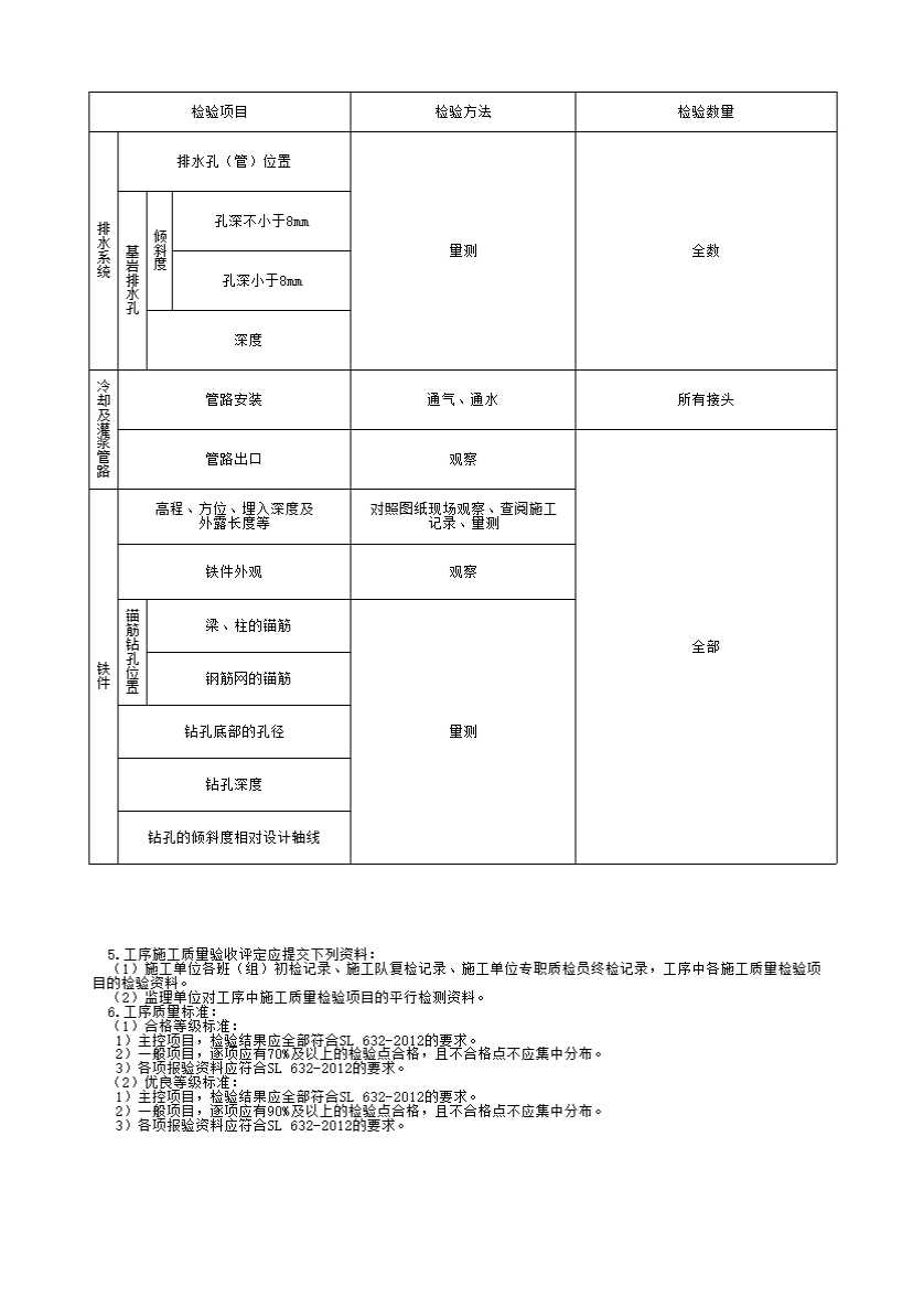1)主控项目,检验结果应全部符合SL 632-2012的要求。