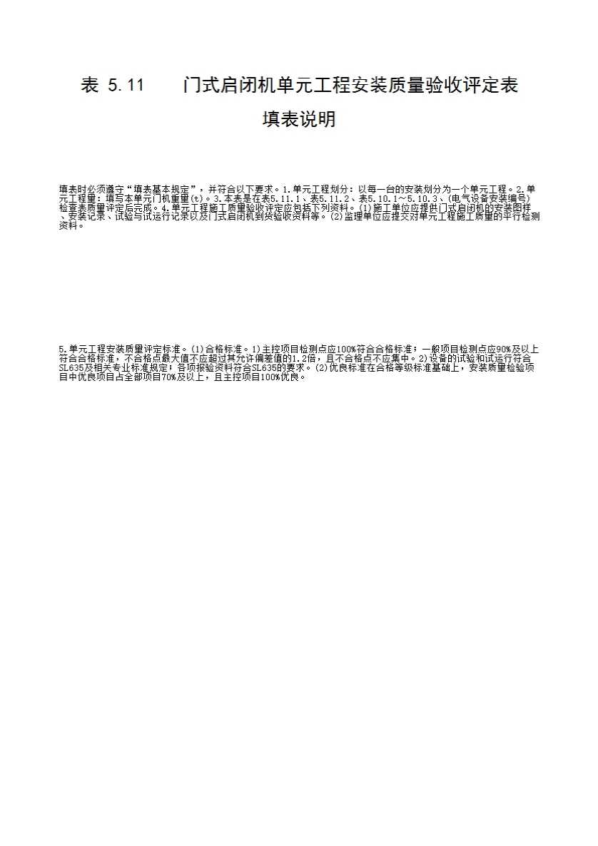 表格名称:表5.11 门式启闭机单元工程安装质量验收评定表