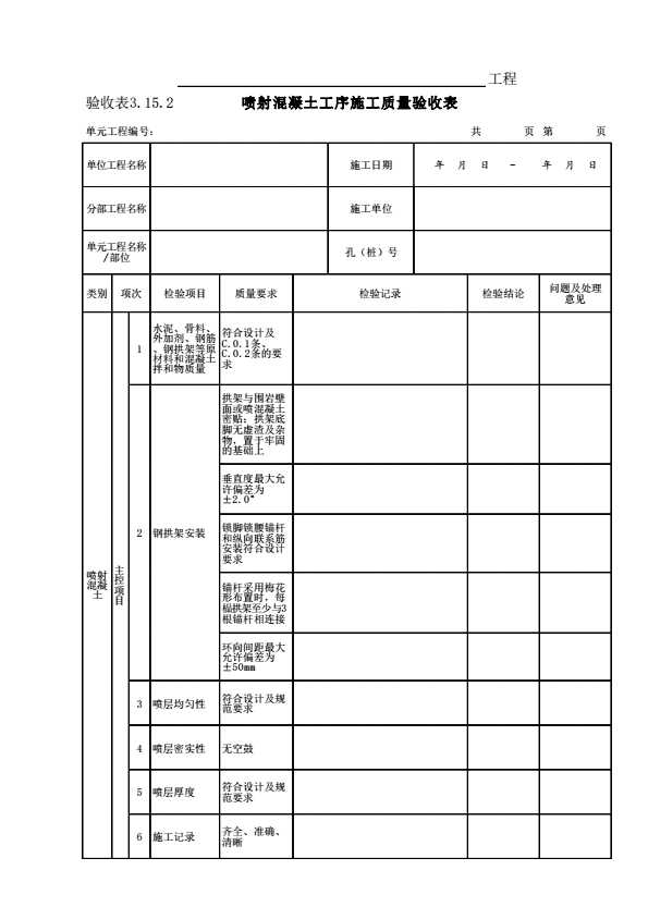 表格名称:表3.15.2 喷射混凝土工序施工质量验收表