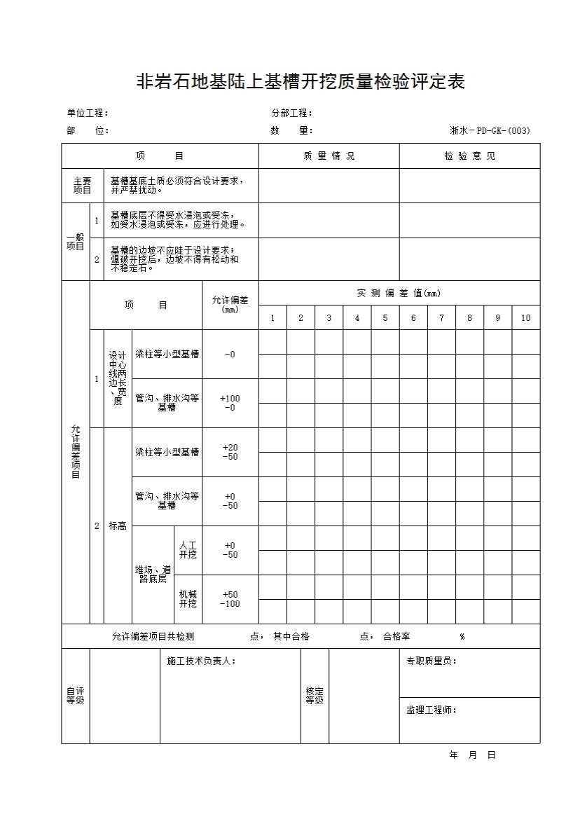 表格名称:003 非岩石地基陆上基槽开挖质量检验评定表