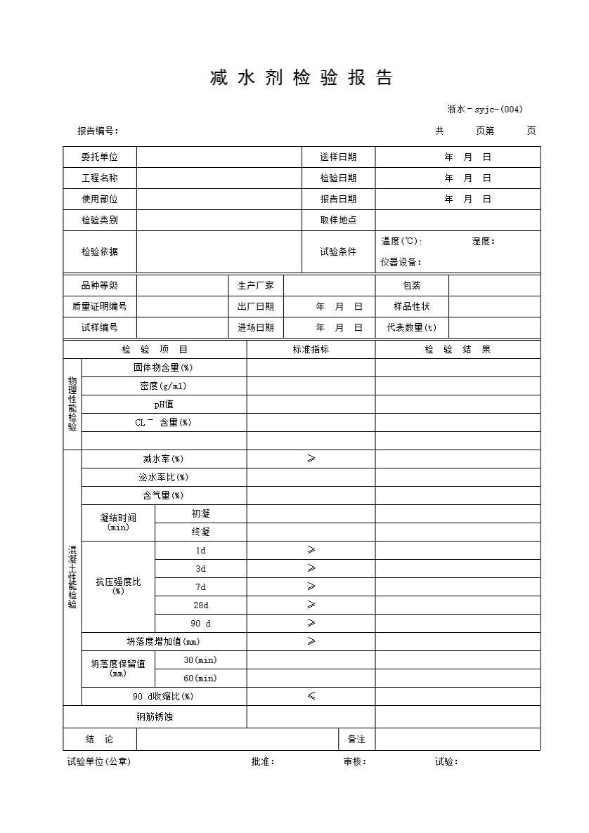 表格名称:004 减水剂检验报告