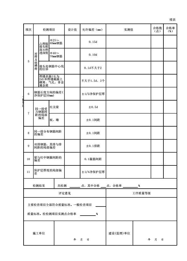 表格名称:表3.7.3 混凝土钢筋工序质量评定表