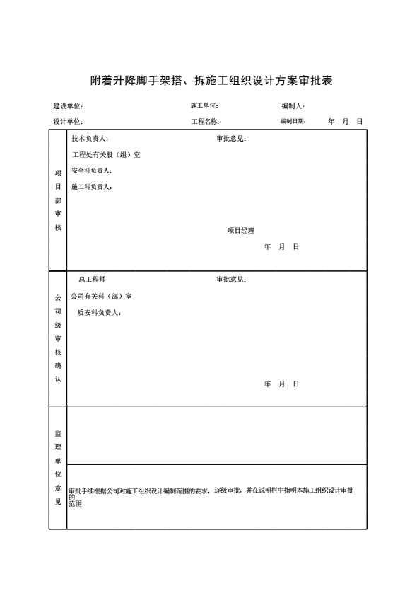 表格名称:附着升降脚手架搭、拆施工组织设计方案审批表