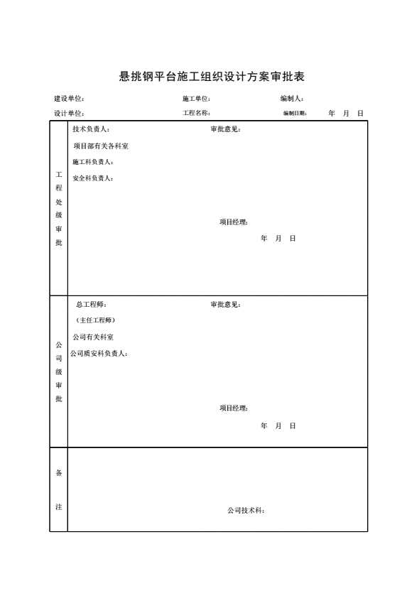 表格名称:悬挑钢平台施工组织设计方案审批表