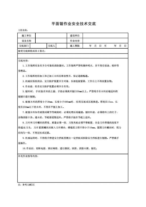 表格名称:平面锯作业安全技术交底