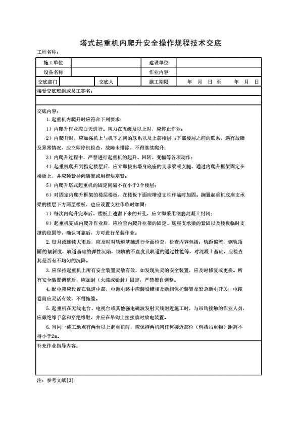 表格名称:塔式起重机内爬升安全操作规程技术交底