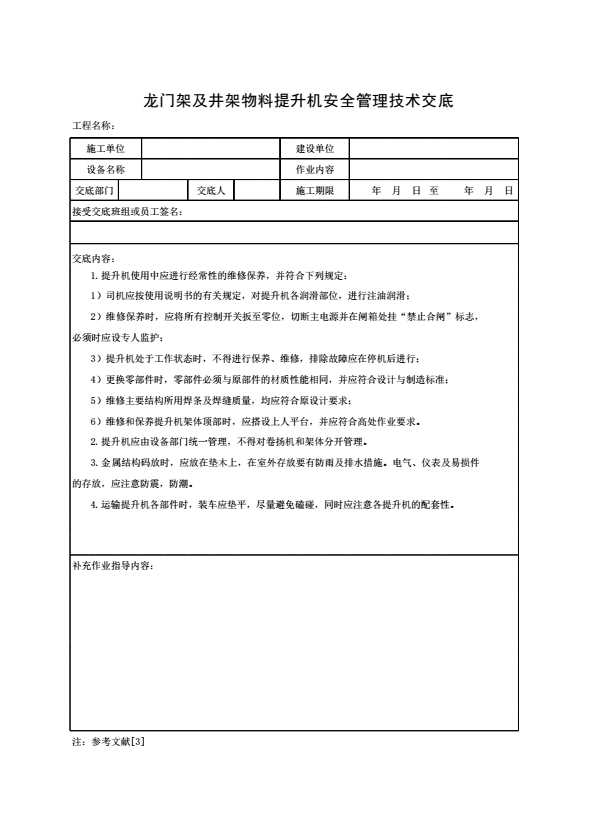 表格名称:龙门架及井架物料提升机安全管理技术交底