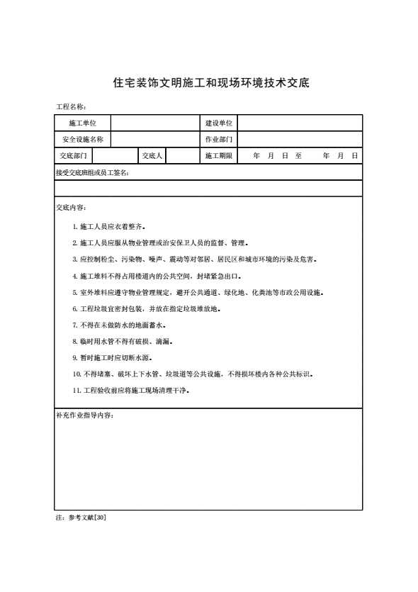 表格名称:住宅装饰文明施工和现场环境技术交底