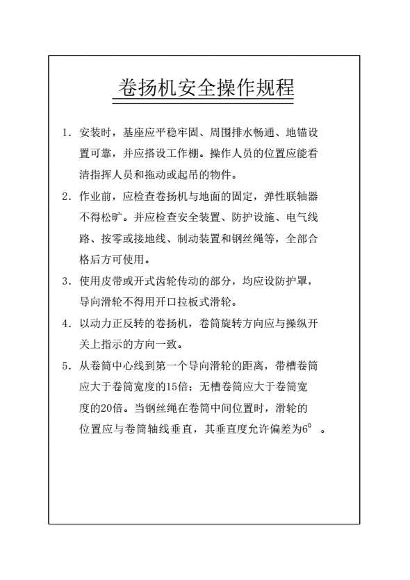 表格名称:卷扬机安全操作规程