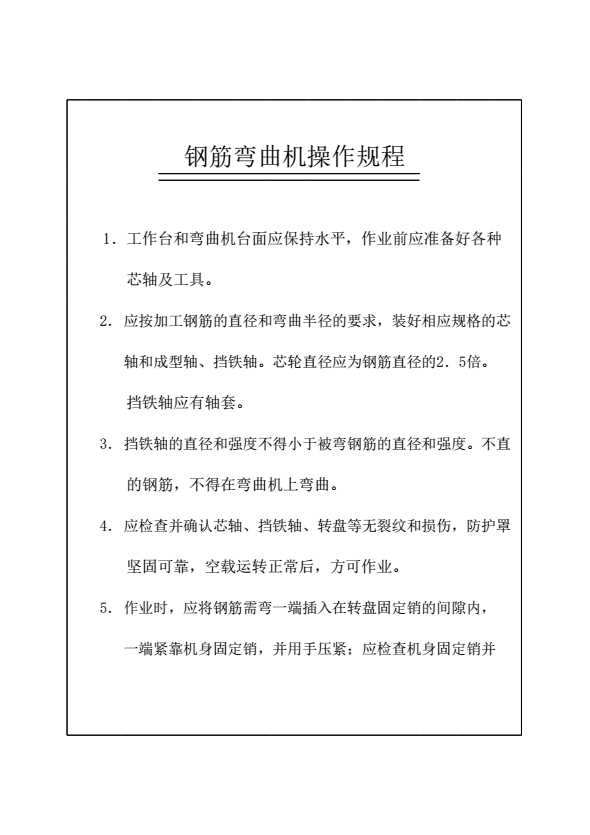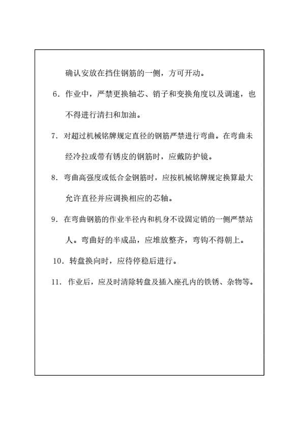 表格名称:钢筋弯曲机操作规程